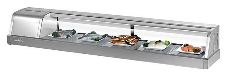 Холодильная витрина для суши Turbo air SAKURA-70/L используется на предприятиях общественного питания и торговли для демонстрации и непродолжительного хранения традиционных японских блюд: роллов, суши, сашими и др. Модель оснащена 4 дверьми и 5 подносами. Корпус изготовлен из нержавеющей стали Posco.