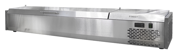 Настольная холодильная витрина Finist ToppingBox НХВкр-3 предназначена для демонстрации и кратковременного хранения подготовленных начинок и топпингов для пиццы, блинов, лапши WOK, а также мясных изделий и полуфабрикатов на предприятиях общественного питания и торговли. Модель оснащена крышкой, которая предотвращает попадание в гастроемкости посторонних предметов. Цельнозаливной корпус выполнен из высококачественной нержавеющей стали, отличающейся прочностью и долговечностью.
