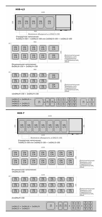 - Соответствие количества и размерности для альтернативного размещения гастроемкостей: