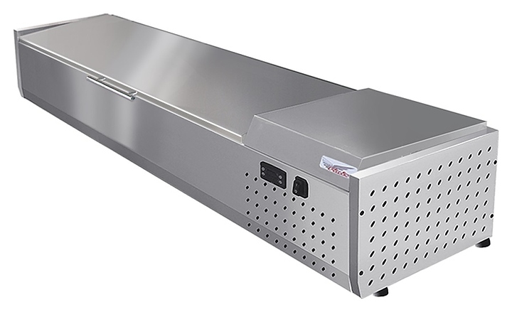 Настольная холодильная витрина Finist ToppingBox НХВкр-7 предназначена для демонстрации и кратковременного хранения подготовленных начинок и топпингов для пиццы, блинов, лапши WOK, а также мясных изделий и полуфабрикатов на предприятиях общественного питания и торговли. Модель оснащена крышкой с рукояткой, устойчивыми ножками, кабелем питания с вилкой и кнопочной панелью управления с цифровым дисплеем. Цельнозаливной корпус выполнен из высококачественной нержавеющей стали.