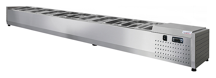 Настольная холодильная витрина Finist ToppingBox НХВо-11 предназначена для демонстрации и кратковременного хранения подготовленных начинок и топпингов для пиццы, блинов, лапши WOK, а также мясных изделий и полуфабрикатов на предприятиях общественного питания и торговли. Цельнозаливной корпус выполнен из высококачественной нержавеющей стали, отличающейся прочностью и долговечностью.