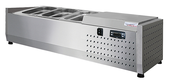 Настольная холодильная витрина Finist ToppingBox НХВо-3,5 предназначена для демонстрации и кратковременного хранения подготовленных начинок и топпингов для пиццы, блинов, лапши WOK, а также мясных изделий и полуфабрикатов на предприятиях общественного питания и торговли. Цельнозаливной корпус выполнен из высококачественной нержавеющей стали, отличающейся прочностью и долговечностью.