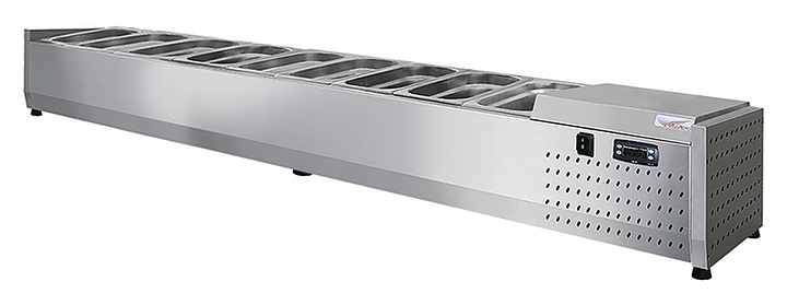 Настольная холодильная витрина Finist ToppingBox НХВо-9 предназначена для демонстрации и кратковременного хранения подготовленных начинок и топпингов для пиццы, блинов, лапши WOK, а также мясных изделий и полуфабрикатов на предприятиях общественного питания и торговли. Цельнозаливной корпус выполнен из высококачественной нержавеющей стали, отличающейся прочностью и долговечностью.