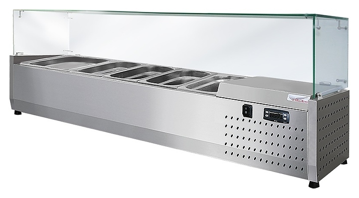 Настольная холодильная витрина Finist ToppingBox НХВсп-4.5 предназначена для демонстрации и кратковременного хранения подготовленных начинок и топпингов для пиццы, блинов, лапши WOK, а также мясных изделий и полуфабрикатов на предприятиях общественного питания и торговли. Модель оснащена камерой для размещения гастроемкостей, куполом с прямоугольными панелями, устойчивыми ножками, кабелем питания с вилкой и кнопочной панелью управления с цифровым дисплеем. Цельнозаливной корпус выполнен из высококачественной нержавеющей стали, купол – из прочного стекла.