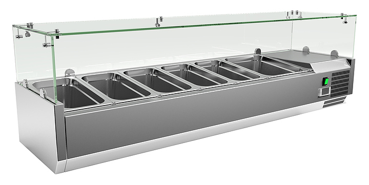 Холодильная витрина? Foodatlas VRX1500/380FG используется на предприятиях общественного питания и торговли для выкладки ингредиентов при приготовления блюд. Модель оснащена электронным термостатом с точным цифровым дисплеем и компрессором для эффективного охлаждения при низком энергопотреблении. Встроенная система антибактериальной защиты и функция автоматического размораживания поддерживают высокие стандарты чистоты и безопасности. Корпус выполнен из высококачественной нержавеющей стали, которая отличается прочностью, долговечностью, устойчивостью к коррозии, легкой очисткой и гигиеничностью, витрина - из стекла.