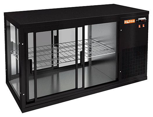 Настольная холодильная витрина HICOLD VRL T 1300 R Black используется на предприятиях общественного питания и торговли для демонстрации, охлаждения и кратковременного хранения напитков, салатов, десертов и других готовых блюд и скоропортящихся продуктов. Модель оснащена вместительной полкой и удобными в использовании дверями-купе. Корпус выполнен из окрашенной стали и однокамерного стеклопакета.