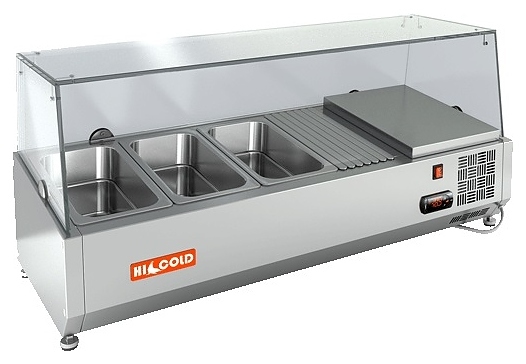 Настольная холодильная витрина HICOLD VRTG 1000 используется на предприятиях общественного питания и торговли для демонстрации, охлаждения и кратковременного хранения салатов, гарниров, закусок и других готовых блюд. Модель оснащена стеклянной надстройкой и специальным креплением для стола. Изделие выполнено из нержавеющей стали.