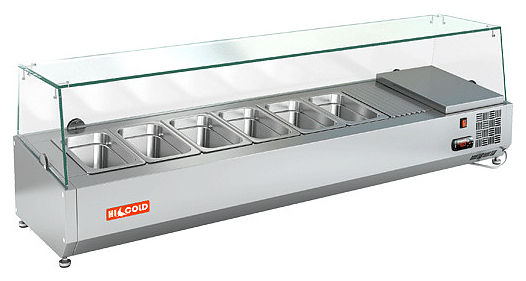 Настольная холодильная витрина HICOLD VRTG 1525 (1/4) используется на предприятиях общественного питания и торговли для демонстрации, охлаждения и кратковременного хранения салатов, гарниров, закусок и других готовых блюд. Модель оснащена электронной панелью управления, стеклянной надстройкой и опорными ножками. Корпус выполнен из нержавеющей стали.