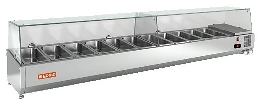 Настольная холодильная витрина HICOLD VRTG 2280 используется на предприятиях общественного питания и торговли для демонстрации, охлаждения и кратковременного хранения салатов, гарниров, закусок и других готовых блюд. Модель оснащена стеклянной надстройкой и специальным креплением для стола. Изделие выполнено из нержавеющей стали.