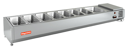 Настольная холодильная витрина HICOLD VRTO 1915 используется на предприятиях общественного питания и торговли для демонстрации, охлаждения и кратковременного хранения салатов, гарниров, закусок и других готовых блюд. Модель оснащена ножками. Изделие выполнено из нержавеющей стали.