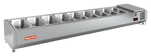 Настольная холодильная витрина HICOLD VRTO 1970 используется на предприятиях общественного питания и торговли для демонстрации, охлаждения и кратковременного хранения салатов, гарниров, закусок и других готовых блюд. Модель оснащена специальным креплением для стола. Изделие выполнено из нержавеющей стали.