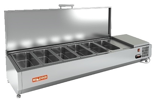 Настольная холодильная витрина HICOLD VRTU 1485 1/4 используется на предприятиях общественного питания и торговли для демонстрации, охлаждения и кратковременного хранения салатов, гарниров, закусок и других готовых блюд. Модель оснащена электронной панелью управления, крышкой и ножками. Изделие выполнено из нержавеющей стали.