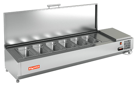 Настольная холодильная витрина HICOLD VRTU 1525 (1/4) используется на предприятиях общественного питания и торговли для демонстрации, охлаждения и кратковременного хранения салатов, гарниров, закусок и других готовых блюд. Модель оснащена электронной панелью управления, крышкой и опорными ножками. Корпус выполнен из нержавеющей стали.