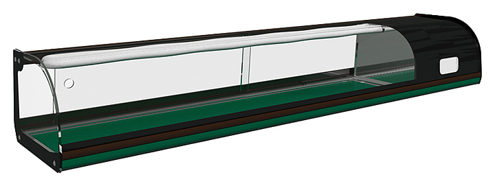 Холодильная витрина KAYMAN К-ВХ-1 предназначена для охлаждения, кратковременного хранения и демонстрации суши на предприятиях общественного питания и торговли. Модель оснащена холодильным агрегатом Electrolux. Оборудование работает на хладагенте R134a. Экспозиционная поверхность выполнена из шлифованной нержавеющей стали, ночные шторки - из оргстекла.