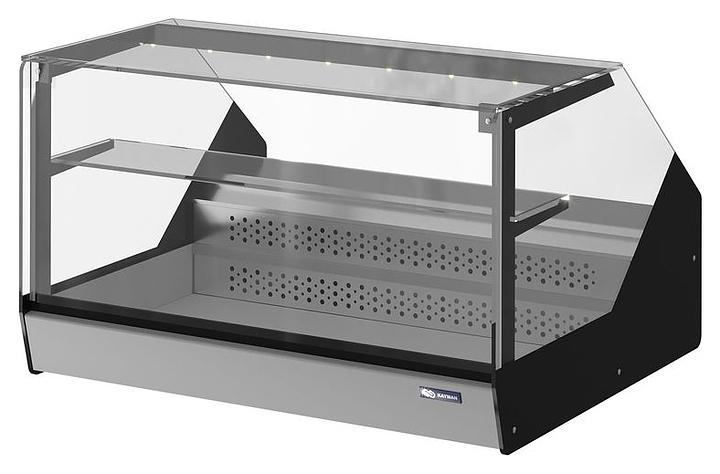 Настольная холодильная витрина KAYMAN ВСА-М1В предназначена для охлаждения, кратковременного хранения и демонстрации готовых блюд и полуфабрикатов на предприятиях общественного питания и торговли. Модель оснащена неохлаждаемой полкой, прямым передним стеклом, LED-подсветкой внутреннего объема и энергосберегающими ночными шторками. Корпус выполнен из стали с термоизоляцией из пенополиуретана, экспозиционная поверхность - из нержавеющей стали, полка - из стекла.