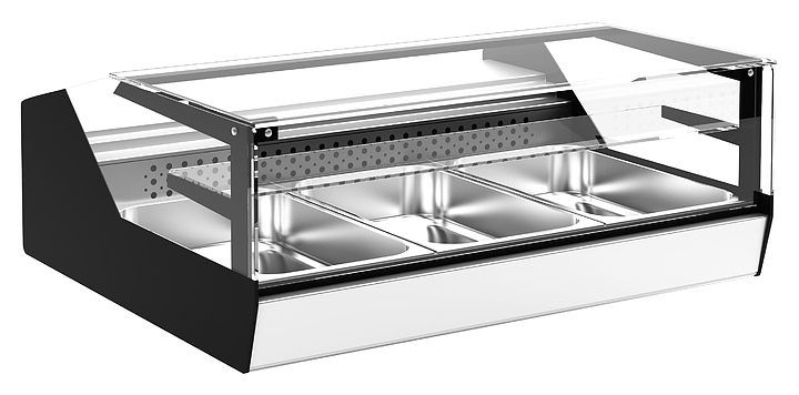 Настольная холодильная витрина KAYMAN ВСА-В1 предназначена для охлаждения, кратковременного хранения и демонстрации бутербродов, мяса, птицы, салатов и десертов на предприятиях общественного питания и торговли. Модель оснащена неохлаждаемой полкой, прямым передним стеклом, LED-подсветкой внутреннего объема и энергосберегающими ночными шторками. Корпус выполнен из стали с термоизоляцией из пенополиуретана, экспозиционная поверхность - из нержавеющей стали, полка - из стекла.