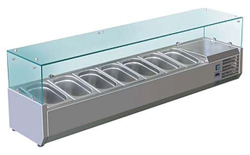 Холодильная витрина Koreco VRX 1800 335 WN предназначена для демонстрации, охлаждения и кратковременного хранения салатов, закусок, ингредиентов для пиццы и т.д. на предприятиях общественного питания и торговли. Теплоизолированный корпус выполнен из нержавеющей стали AISI 201, крышка - из закаленного стекла со специальным крепежом.