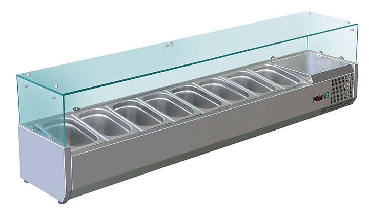 Холодильная витрина Koreco VRX 1800 395 WN предназначена для демонстрации, охлаждения и кратковременного хранения салатов, закусок, ингредиентов для пиццы и т.д. на предприятиях общественного питания и торговли. Теплоизолированный корпус выполнен из нержавеющей стали AISI 201, крышка - из закаленного стекла со специальным крепежом.