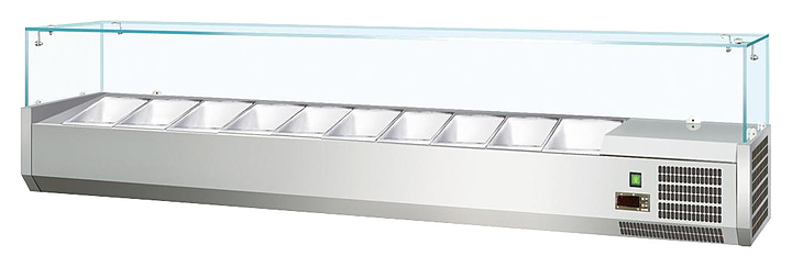 Холодильная витрина Koreco VRX 2000-330 (335I) предназначена для демонстрации, охлаждения и кратковременного хранения салатов, закусок, ингредиентов для пиццы и т.д. на предприятиях общественного питания и торговли. Корпус выполнен из нержавеющей стали AISI 304, крышка - из закаленного стекла со специальным крепежом.
