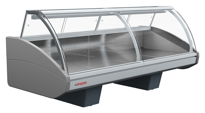 Холодильная витрина MAGMA Antigua ЗУ 90 предназначена для демонстрации, продажи и кратковременного хранения мясной и рыбной гастрономии, сыров, молочной продукции и кондитерских изделий. Модель оснащена LED-освещением внутреннего объёма. Корпус и поддоны изготовлены из высококачественной нержавеющей стали, суперструктура - из полнотелого алюминиевого профиля, фронтальная панель - из закаленного ударопрочного стекла на гидроподъемниках, столешница - из нержавеющей стали повышенной прочности.