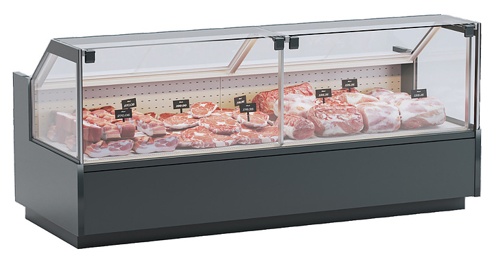 Холодильная витрина MAGMA Beryl plug-in 1900 предназначена для демонстрации, продажи и кратковременного хранения мясной и рыбной гастрономии, сыров, молочной продукции, кондитерских изделий и другой продукции. Модель оснащена охлаждаемым бункером (запасником) и LED-освещением внутреннего объёма. Корпус и поддоны изготовлены из высококачественной нержавеющей стали, суперструктура - из полнотелого алюминиевого профиля, фронтальная панель - из закаленного ударопрочного стекла на гидроподъемниках, столешница - из нержавеющей стали повышенной прочности.