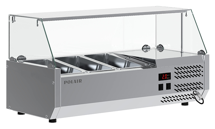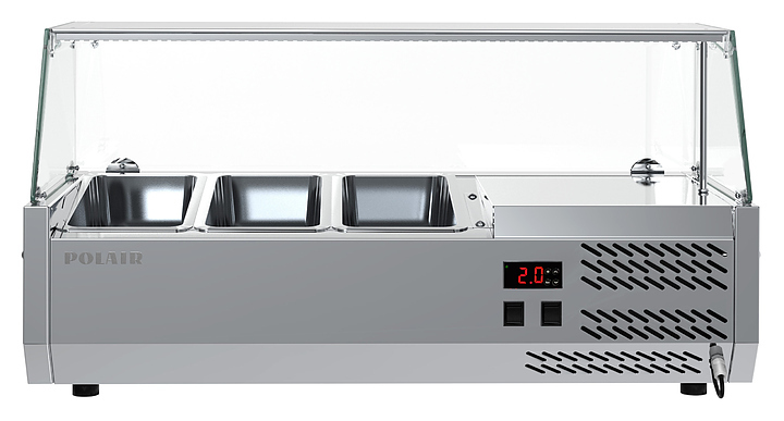 Холодильная витрина POLAIR VT1vEN 1/3 предназначена для демонстрации, охлаждения и кратковременного хранения ингредиентов для пиццы и салатов на предприятиях общественного питания и торговли. Модель оснащена стеклянным защитным колпаком. Обшивка корпуса шкафа изготовлена из нержавеющей стали и обеспечивает механическую прочность и долговечность витрины. Оборудование рассчитано на работу при температуре окружающей среды до 32 °C и относительной влажности воздуха до 80%.