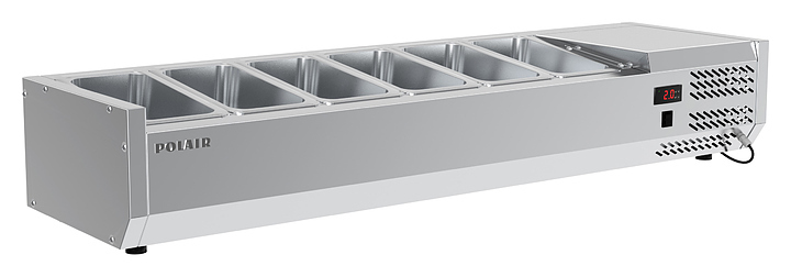 Холодильная витрина POLAIR VT2EN 1/3 предназначена для демонстрации, охлаждения и кратковременного хранения ингредиентов для пиццы и салатов на предприятиях общественного питания и торговли. Обшивка корпуса шкафа изготовлена из нержавеющей стали и обеспечивает механическую прочность и долговечность витрины. Оборудование рассчитано на работу при температуре окружающей среды до 32 °C и относительной влажности воздуха до 80%.