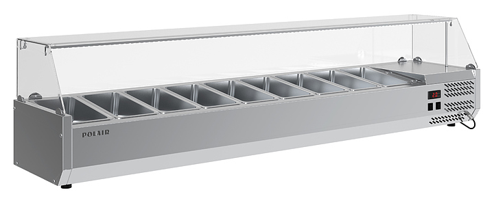 Холодильная витрина POLAIR VT3EN 1/3 предназначена для демонстрации, охлаждения и кратковременного хранения ингредиентов для пиццы и салатов на предприятиях общественного питания и торговли. Обшивка корпуса шкафа изготовлена из нержавеющей стали и обеспечивает механическую прочность и долговечность витрины. Оборудование рассчитано на работу при температуре окружающей среды до 32 °C и относительной влажности воздуха до 80%.