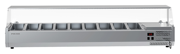 Холодильная витрина POLAIR VT3vEN 1/3 предназначена для демонстрации, охлаждения и кратковременного хранения ингредиентов для пиццы и салатов на предприятиях общественного питания и торговли. Модель оснащена стеклянным защитным колпаком. Обшивка корпуса шкафа изготовлена из нержавеющей стали и обеспечивает механическую прочность и долговечность витрины. Оборудование рассчитано на работу при температуре окружающей среды до 32 °C и относительной влажности воздуха до 80%.