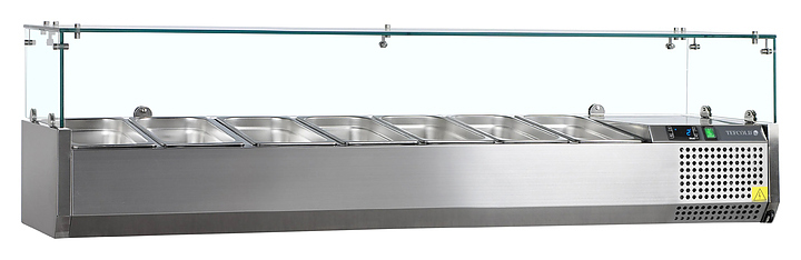 Холодильная витрина TEFCOLD VK33-160 предназначена для кратковременного хранения и демонстрации готовых салатов, мясных или рыбных закусок, а также ингредиентов для них на предприятиях общественного питания и торговли. Корпус и внутренняя обшивка выполнены из нержавеющей стали.