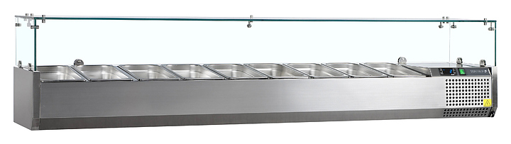 Холодильная витрина TEFCOLD VK38-200 предназначена для кратковременного хранения и демонстрации готовых салатов, мясных или рыбных закусок, а также ингредиентов для них на предприятиях общественного питания и торговли. Корпус и внутренняя обшивка выполнены из нержавеющей стали.