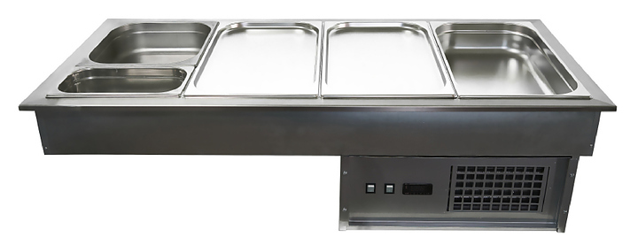 Холодильная витрина ТехноБалт 4 GN 1/1 используется на предприятиях общественного питания и торговли для охлаждения и кратковременного хранения ингредиентов для салатов. Подходит для гастроемкостей глубиной 100 мм.