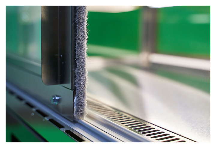 - Индивидуальное освещение светодиодными светильниками всех стеклянных полок и дна