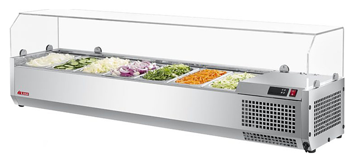 Настольная холодильная витрина Turbo air CTST-1500G используется на предприятиях общественного питания и торговли для демонстрации и кратковременного хранения ингредиентов, салатов и готовых блюд в гастроемкостях. Модель оснащена цифровым дисплеем температуры на передней панеле и компрессором с боковым креплением. Корпус выполнен из нержавеющей стали, ножки из АБС-пластика, изоляция - из полиуретана высокой плотности.