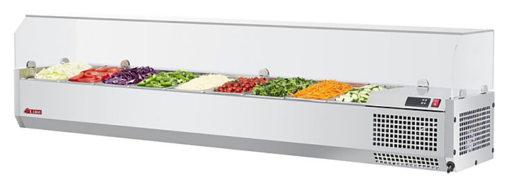 Настольная холодильная витрина Turbo air CTST-1800 используется на предприятиях общественного питания и торговли для демонстрации и кратковременного хранения ингредиентов, салатов и готовых блюд в гастроемкостях. Модель оснащена цифровым дисплеем температуры на передней панеле и компрессором с боковым креплением. Корпус выполнен из нержавеющей стали, ножки из АБС-пластика, изоляция - из полиуретана высокой плотности.