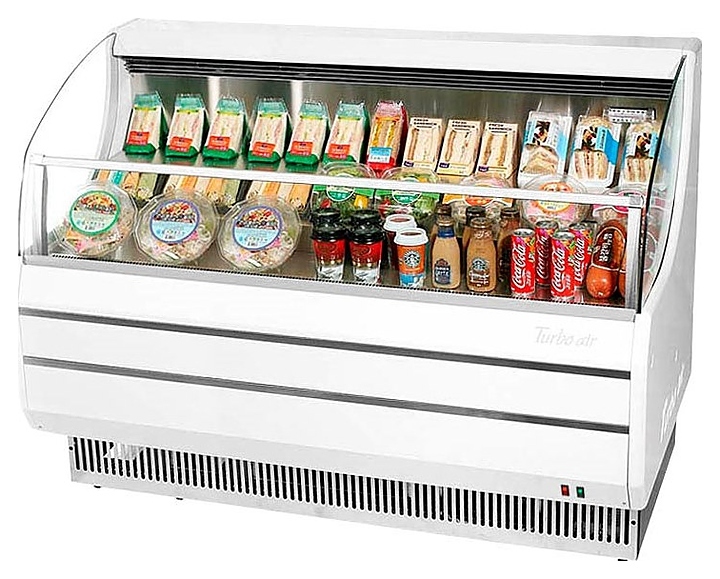 Горизонтальная открытая холодильная витрина Turbo air TOM-50L используется на предприятиях общественного питания и торговли для охлаждения, кратковременного хранения, демонстрации и продажи напитков, продуктов питания, салатов и других гастрономических изделий. Модель оснащена навесной полкой, стеклянными стенками, регулируемыми ножками и LED-подсветкой. Корпус и ножки выполнены из нержавеющей стали Posco.