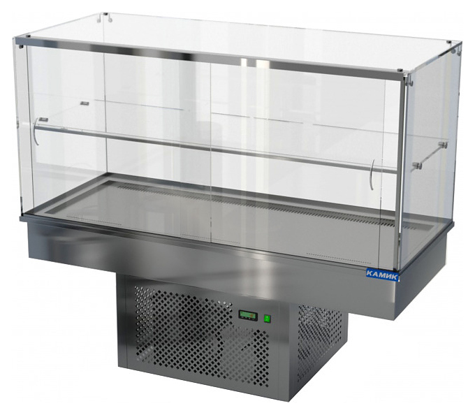 Встраиваемая холодильная витрина КАМИК ВХ-341645 используется на предприятиях общественного питания и торговли для охлаждения, демонстрации и кратковременного хранения продуктов и готовых блюд. Витрина оснащена куполом, полкой и подсветкой. Корпус выполнен из нержавеющей стали AISI 430 толщиной 1 мм, столешница - из нержавеющей стали AISI 304 толщиной 1 мм, купол и полка - из каленого стекла толщиной 10 мм.