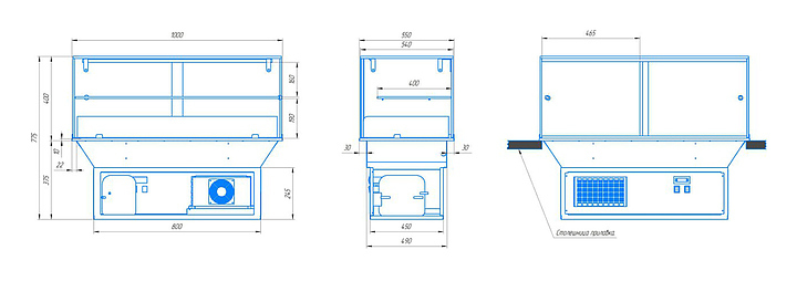 Встраиваемая холодильная витрина ТехноБалт Тикси DROP-IN 1000х550х400 используется на предприятиях общественного питания и торговли для охлаждения, демонстрации и кратковременного хранения продуктов, напитков и готовых блюд. Модель оснащена 2 дверьми-купе со сторона продавца, полкой и светодиодными светильниками. Безрамочный купол и полка выполнены из закаленного стекла, двери-купе - из акрилового стекла, дно витрины в демонстрационной зоне - из нержавеющей стали AISI 304.