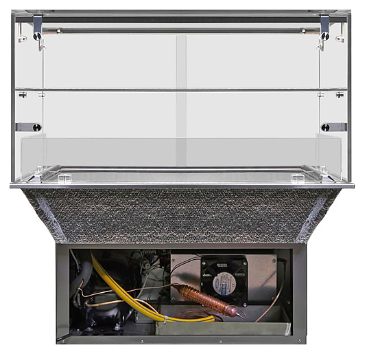 - Автоматическая оттайка витрины и удаление (испарение) конденсата