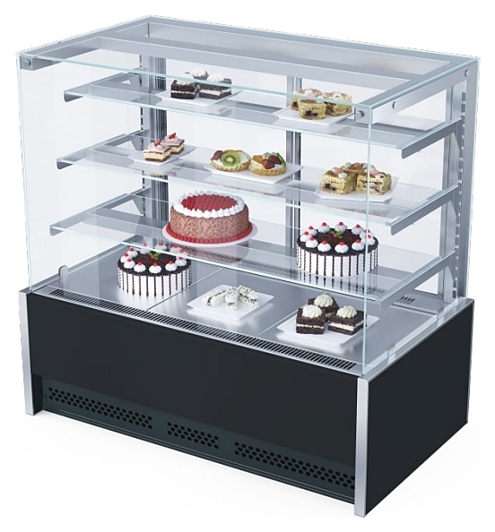 Кондитерская витрина Be blocks! be sweet! max self M предназначена для демонстрации, охлаждения и кратковременного хранения тортов, пирожных и других кондитерских изделий на предприятиях общественного питания и торговли. Модель оснащена электронным контроллером Danfoss, испарителем и конденсатором Sest (Италия), 3 стеклянными полками и LED-подсветками внутреннего объема и полок. Внутреннее оформление выполнено из нержавеющей стали.