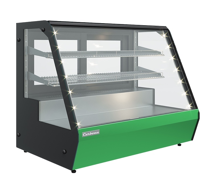 Нейтральная кондитерская витрина Carboma A59 N 0,9-1 используется на предприятиях общественного питания и торговли для демонстрации и кратковременного хранения тортов, пирожных и других кондитерских изделий. Модель оснащена закаленными стеклопакетами, гнутым фронтальным стеклом, 2 регулируемыми полками-решетками, встроенной ручкой и регулируемыми ножками. Корпус выполнен из стали, термоизоляция - из пенополиуретана, экспозиционная поверхность - из нержавеющей стали.
