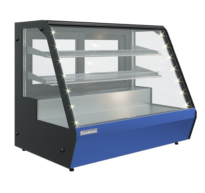 Кондитерская витрина Carboma A59 VV 0,7-1 используется на предприятиях общественного питания и торговли для демонстрации, охлаждения и кратковременного хранения тортов, пирожных и других кондитерских изделий. Модель оснащена закаленными стеклопакетами, гнутым фронтальным стеклом, 2 регулируемыми полками-решетками, встроенной ручкой и регулируемыми ножками. Корпус выполнен из стали, термоизоляция - из пенополиуретана, экспозиционная поверхность - из нержавеющей стали.
