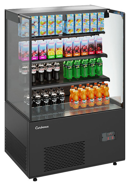 Открытая кондитерская витрина Carboma KC71-130 VV 0,9-2 COSMO используется на предприятиях общественного питания и торговли для демонстрации, охлаждения и кратковременного хранения напитков, тортов, пирожных и других кондитерских изделий и гастрономических товаров. Модель оснащена 3 регулируемыми по уровню металлическими полками со встроенными ценникодержателями и регулируемыми ножками высотой от 30 до 50 мм. Корпус выполнен из стали и пластика, термоизоляция корпуса - из пенополиуретана, остекление - из структурного стеклопакета.