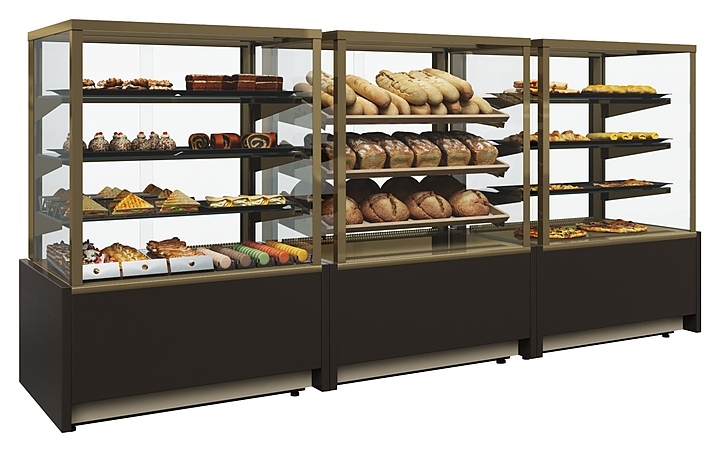 Кондитерская витрина Carboma KC70 VM 0,9-1 Light используется на предприятиях общественного питания и торговли для демонстрации, охлаждения и кратковременного хранения тортов, пирожных и других кондитерских изделий. Модель оснащена прямыми стеклами. Корпус выполнен из стали, боковины - из металла толщиной 30 мм, раздвижные задние створки - из оргстекла, термоизоляция корпуса и боковин - из пенополиуретана.