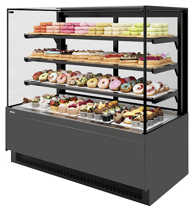 Кондитерская витрина Chilz VETE II KUB 130 предназначена для демонстрации, охлаждения и краткосрочного хранения кондитерских изделий, закусок и десертов на предприятиях общественного питания и торговли. Модель оснащена 4 экспозиционными вертикальными полками и электронным контроллером.