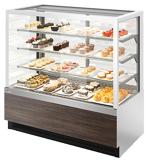 Кондитерская витрина Chilz VETE KUB LUX 130 предназначена для демонстрации, охлаждения и краткосрочного хранения кондитерских изделий, закусок и десертов на предприятиях общественного питания и торговли. Модель оснащена 4 полками. Оборудование работает при температуре окружающей среды 25 °С и влажности 60%.