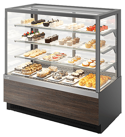 Кондитерская витрина Chilz VETE KUB LUX 130 предназначена для демонстрации, охлаждения и краткосрочного хранения кондитерских изделий, закусок и десертов на предприятиях общественного питания и торговли. Модель оснащена 4 полками. Оборудование работает при температуре окружающей среды 25 °С и влажности 60%.