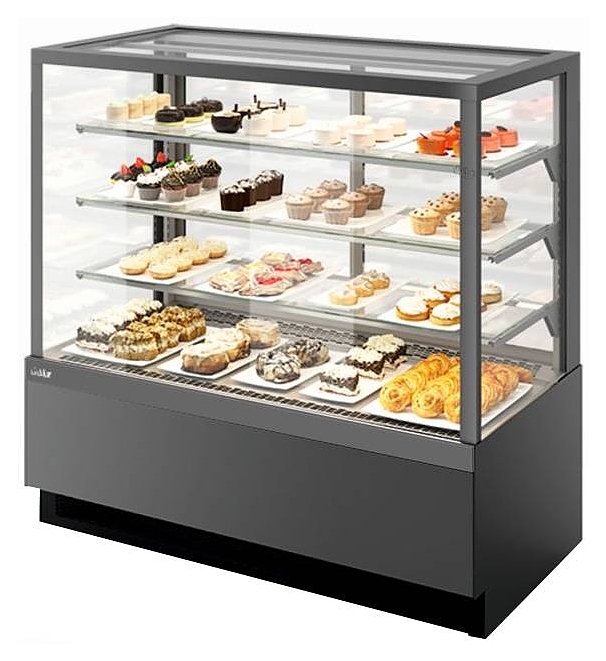 Кондитерская витрина Chilz VETE KUB LUX 90 предназначена для демонстрации, охлаждения и краткосрочного хранения кондитерских изделий, закусок и десертов на предприятиях общественного питания и торговли. Модель оснащена 3 стеклянными полками. Оборудование работает при температуре окружающей среды 25 °С и влажности 60%.