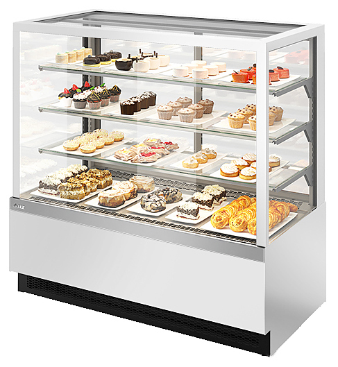 Кондитерская витрина Chilz VETE KUB LUX 90 предназначена для демонстрации, охлаждения и краткосрочного хранения кондитерских изделий, закусок и десертов на предприятиях общественного питания и торговли. Модель оснащена 4 полками. Оборудование работает при температуре окружающей среды 25 °С и влажности 60%.