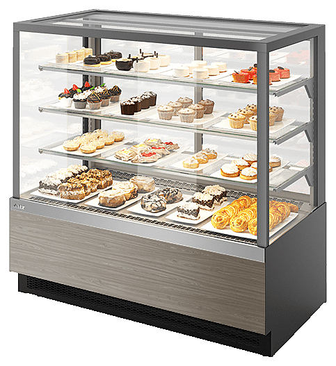 Кондитерская витрина Chilz VETE KUB LUX 90 предназначена для демонстрации, охлаждения и краткосрочного хранения кондитерских изделий, закусок и десертов на предприятиях общественного питания и торговли. Модель оснащена 4 полками. Оборудование работает при температуре окружающей среды 25 °С и влажности 60%.
